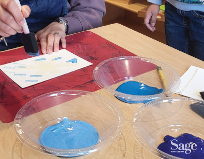 This is where children build independence through real, meaningful activities: pouring, sweeping, food prep, dressing skills, and caring for the environment. Art also lives here, because creative work in Montessori is hands-on, process-based, and rooted in developing coordination, focus, and self-expression. Grace and Courtesy lessons teach children how to interact thoughtfully with others and express themselves creatively. These everyday tasks built into Practical Life ultimately aim to develop independence, focus, and confidence; skills that carry into everything else they do.
